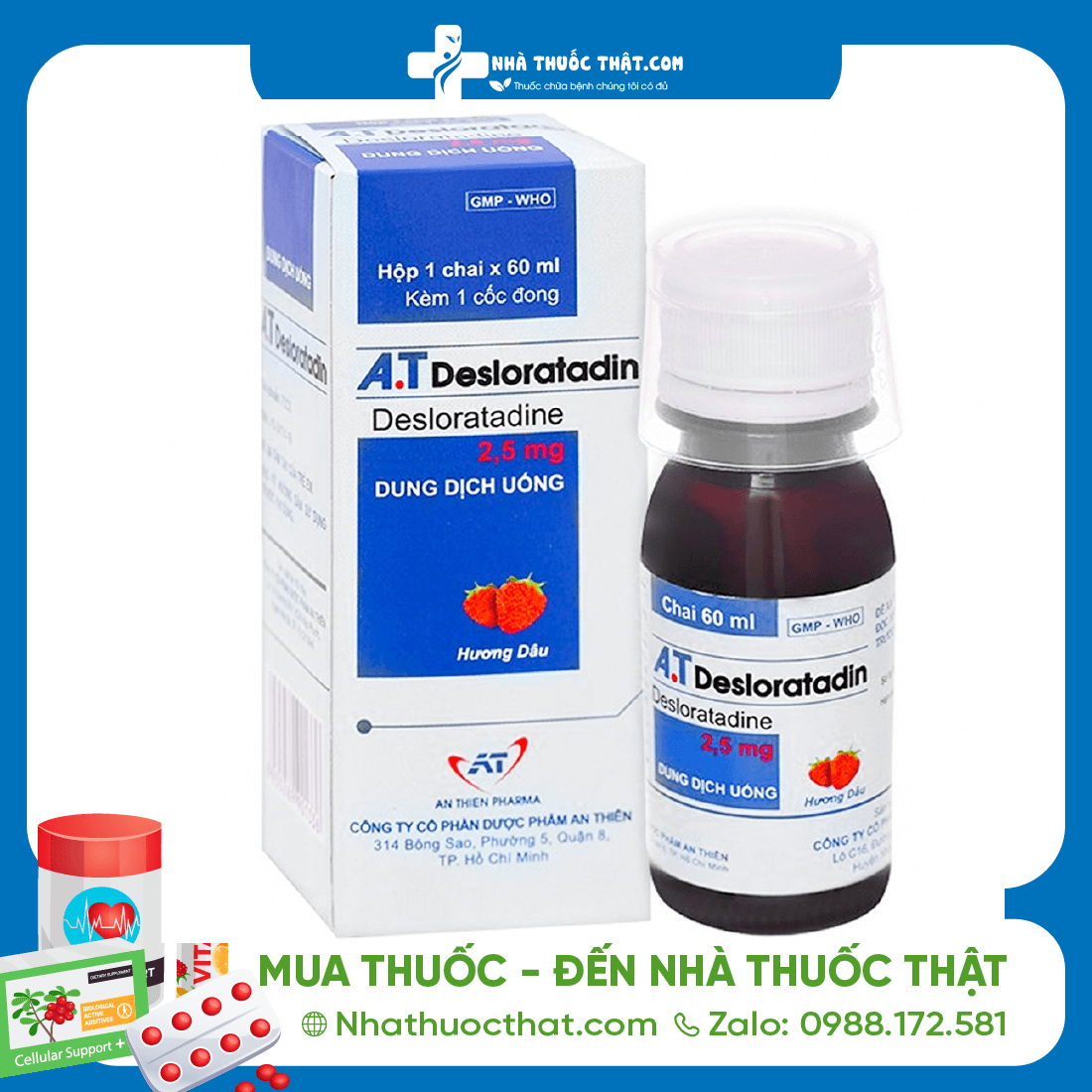 - Dạng bào chế: Thuốc A.T Desloratadin (ống) được bào chế dưới dạng Dung dịch uống.
