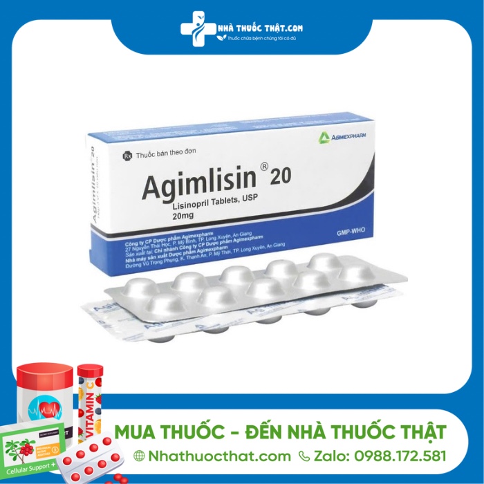 Agimlisin 20mg là sản phẩm của Agimexpharm với thành phần chính là Lisinopril. Thuốc Agimlisin 10mg có tác dụng điều trị tăng huyết áp, điều trị suy tim, nhồi máu cơ tim cấp có huyết động ổn định, điều trị bệnh thận do đái tháo đường.