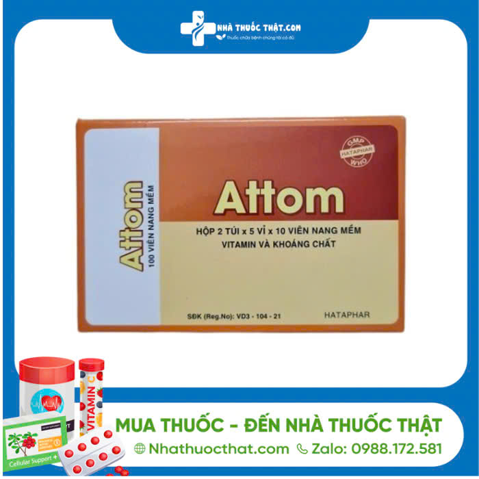 - Thuốc Attom giúp bổ sung vitamin và khoáng chất thiết yếu cho cơ thể giúp hỗ trợ sự phát triển và duy trì sức khỏe toàn diện của cơ thể