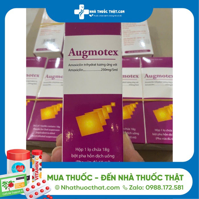 Augmotex thuộc nhóm thuốc trị ký sinh trùng, chống nhiễm khuẩn, kháng virus, kháng nấm, có tác dụng điều trị bệnh nhiễm trùng do các vi khuẩn nhạy cảm ở đường hô hấp dưới, đường hô hấp trên, tiêu hóa, tiết niệu-sinh dục.