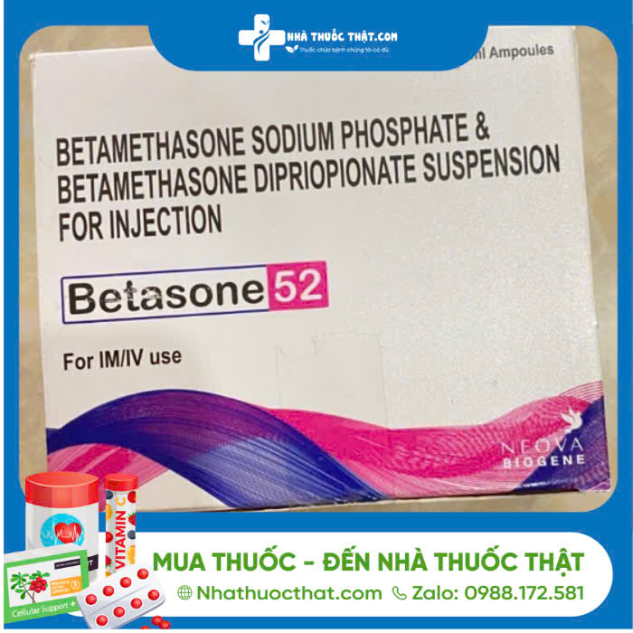Betasone 52 là thuốc chứa thành phần chính Betamethasone, thuộc nhóm corticosteroid có tác dụng kháng viêm, chống dị ứng và ức chế miễn dịch. Thuốc được chỉ định trong điều trị các bệnh lý viêm da dị ứng, viêm khớp dạng thấp, lupus ban đỏ, vảy nến và các tình trạng viêm nhiễm khác gây ra bởi phản ứng miễn dịch quá mức của cơ thể.