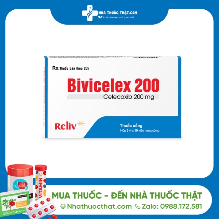 Bivicelex 200 BRV do công ty BV Pharma sản xuất, là một loại thuốc chứa hoạt chất celecoxib, thuộc nhóm thuốc chống viêm không steroid. Thuốc được sử dụng trong điều trị các bệnh lý như viêm và thoái hóa khớp, viêm khớp dạng thấp ở người lớn, cũng như giúp giảm đau sau phẫu thuật, nhổ răng, hoặc các cơn thống kinh nguyên phát. Bivicelex 200 có tác dụng giảm đau, chống viêm và hạ sốt, đặc biệt phù hợp trong các bệnh lý xương khớp. Liều dùng 200mg mỗi lần có thể sử dụng mà không cần quan tâm đến bữa ăn, mang lại sự tiện lợi cho người dùng. Đây là một giải pháp hiệu quả để cải thiện tình trạng viêm đau ở người lớn.