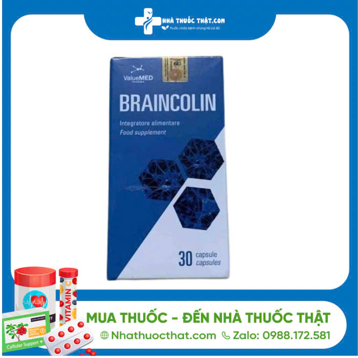 Braincolin là một sản phẩm hỗ trợ sức khỏe não bộ, được sản xuất bởi công ty ValueMED Pharma Srl tại Ý. Sản phẩm chứa các thành phần chính như Citicoline, Ginkgo Biloba, Alpha Lipoic Acid, Vitamin B6 và Kẽm, có tác dụng cải thiện trí nhớ, tăng cường tập trung và lưu thông máu não.
