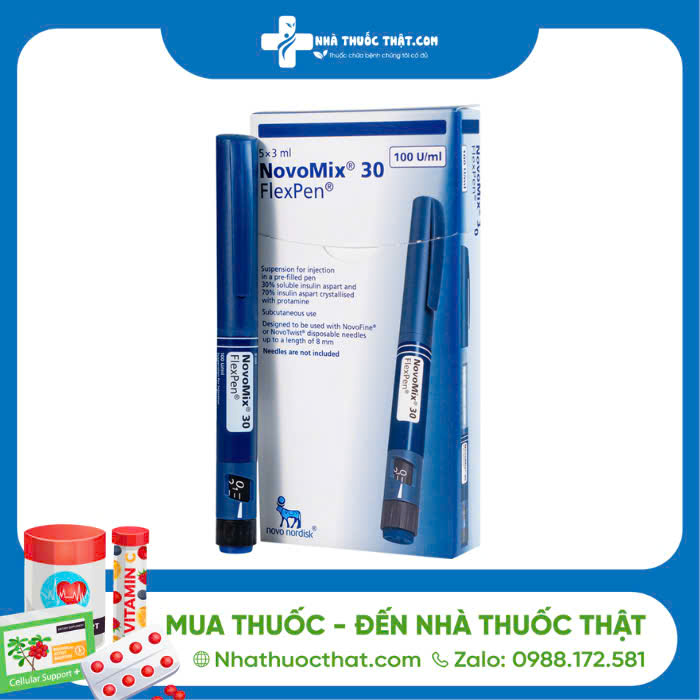 Bút tiêm Novomix 30 FlexPen do Công ty Novo Nordisk (Đan Mạch) sản xuất. NovoMix 30 là hỗn dịch 2 pha (hỗn hợp/trộn sẵn) của insulin aspart hoà tan (insulin analogue tác dụng nhanh) và insulin aspart kết tinh với protamine (insulin analogue tác dụng trung bình). Hỗn dịch chứa insulin aspart tác dụng nhanh và insulin aspart tác dụng trung bình hoặc tác dụng kéo dài theo tỷ lệ 30/70, được chỉ định để điều trị bệnh nhân đái tháo đường cần điều trị bằng insulin.