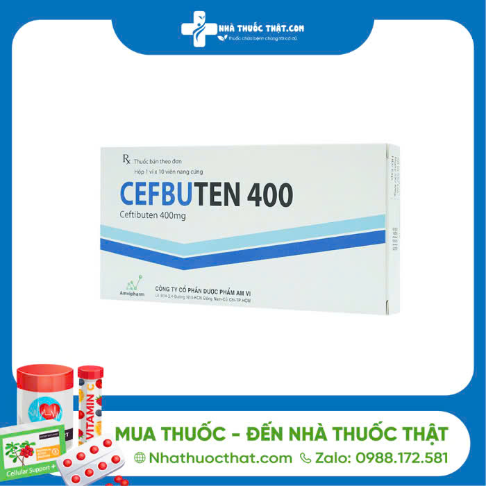 Cefbuten 400 là sản phẩm của Công ty Cổ phần Dược phẩm Am Vi (Amvipharm), thành phần chính là Ceftibuten Dihydrat. Thuốc được dùng để điều trị các trường hợp nhiễm khuẩn vừa và nhẹ do các vi khuẩn nhạy cảm gây ra như: Nhiễm khuẩn hô hấp, viêm tai giữa cấp, viêm họng, viêm amidan, nhiễm khuẩn đường tiết niệu.