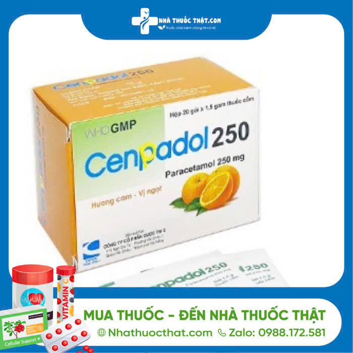 - Hòa tan thuốc Cenpadol 250 vào lượng nước đến khi sủi hết bọt và uống;