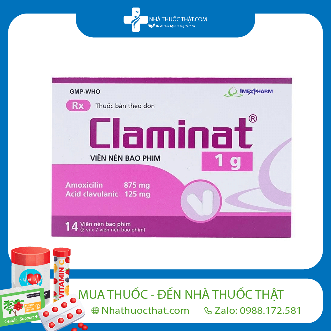 Claminat 1g là một kháng sinh thuộc nhóm beta – lactam, dùng để điều trị các nhiễm khuẩn ở đường hô hấp trên, tai mũi họng và đường hô hấp dưới. Ngoài ra Claminat còn dùng để điều trị nhiễm khuẩn ở đường tiết niệu sinh dục, da, mô mềm, xương khớp và nha khoa…. Dưới đây là thông tin về sản phẩm