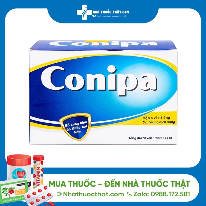 - Thận trọng khi sử dụng Conipa 5ml cùng với thuốc hoặc thực phẩm chức năng có chứa đồng, canxi, sắt… Vì có thể dẫn đến cơ chế cạnh tranh hấp thu trong cơ thể. Trong trường hợp bắt buộc phải sử dụng, bạn nên uống các thuốc trên cách nhau ít nhất 3 giờ.