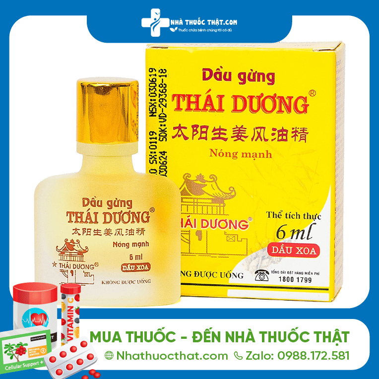 Dầu gừng Thái Dương là sản phẩm được biết đến nhiều nhất với công dụng giúp trị đau đầu, đau lưng, đau dây thần kinh, đau vai gáy, đau nhức do phong thấp, lòng bàn chân, bàn tay lạnh giá, tê, mỏi… Dưới đây là thông tin về sản phẩm