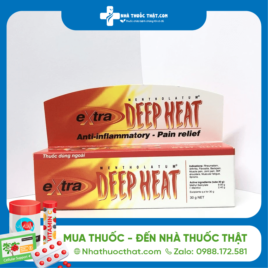 Deep Heat là sản phẩm được biết đến nhiều nhất với công dụng giúp giảm đau cơ, đau lưng, đau khớp, cứng vai, mỏi cơ, đau dây thần kinh, vết bầm, bong gân… Dưới đây là thông tin về sản phẩm