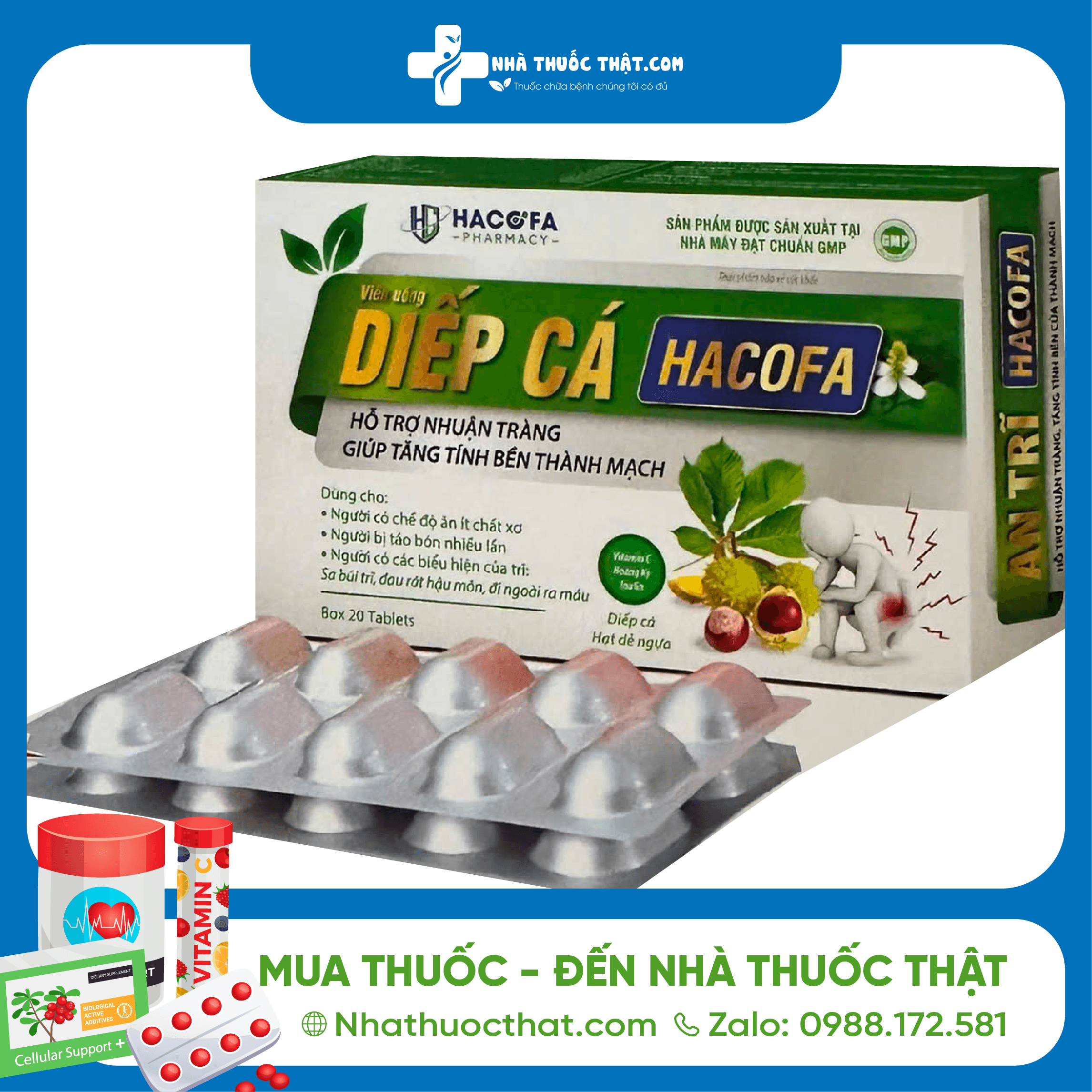 Diếp cá Hacofa là sản phẩm với công dụng chính giúp hỗ trợ nhuận tràng, tăng tính bền thành mạch,… Dưới đây là thông tin về sản phẩm