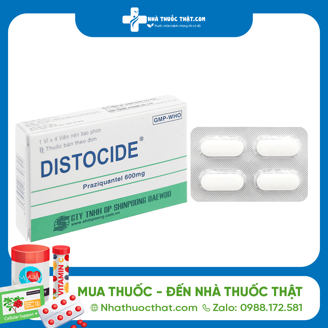 Distocide 600mg là thuốc điều trị ký sinh trùng sán phổ rộng, chứa hoạt chất chính Praziquantel – được Tổ chức Y tế Thế giới (WHO) khuyến cáo sử dụng trong điều trị bệnh sán máng, sán lá gan, sán dây và các bệnh do sán khác gây ra.