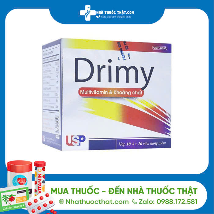 - Thông thường, bệnh nhân sử dụng mỗi ngày 1 viên nang Drimy để bổ sung vitamin và khoáng chất cần thiết cho cơ thể.