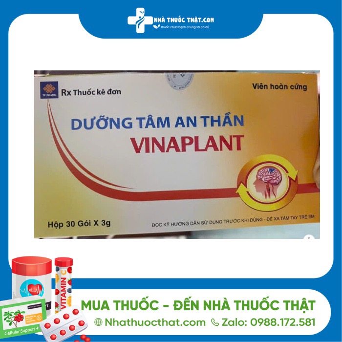 Dưỡng tâm an thần Vinaplant là sản phẩm giúp an thần, hỗ trợ điều trị chứng mất ngủ, suy nhược thần kinh, chóng mặt, thường lo lắng hồi hộp, suy giảm trí nhớ. Sản phẩm dùng cho người lớn và trẻ em trên 6 tuổi.