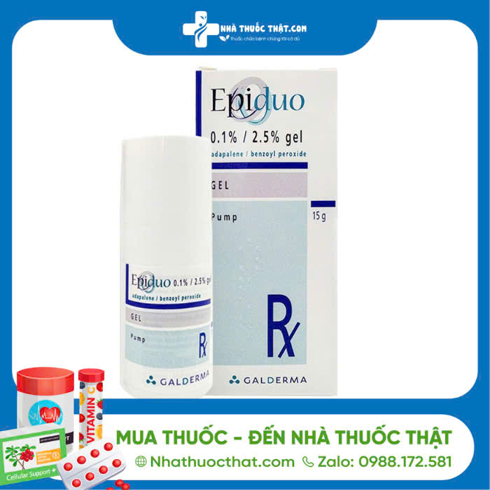 Gel Epiduo dạng tuýp của Công ty Galderma Laboratories – Pháp, hoạt chất chính là adapalen, benzoyl peroxid, là thuốc dùng để điều trị mụn trứng cá khi có các biểu hiện bị bít tắc, mụn sẩn hoặc xuất hiện tình trạng mụn mủ. Epiduo Gel tác động đồng thời vào tác nhân gây mụn, có thể trị triệu chứng nhanh, đăc biệt không đáp ứng với các loại thuốc thoa khác.