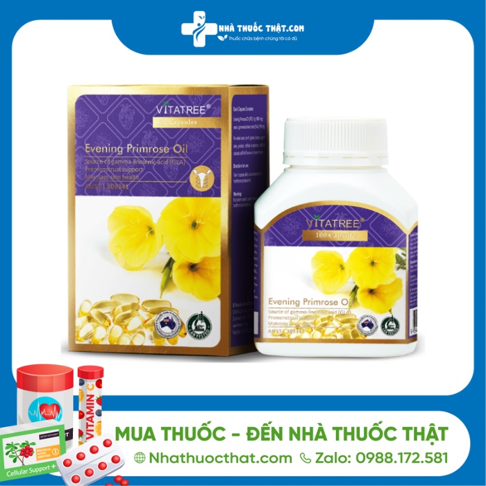 Evening Primrose Oil Vitatree chứa thành phần chính được chiết xuất từ dầu hoa Anh Thảo, sản phẩm này không chỉ là một nguồn cung cấp axit béo omega-6 dùng cho những người cao tuổi, chị em phụ nữ giai đoạn tiền mãn kinh. Sản phẩm này thuộc thương hiệu Vitatree Australia. Được bào chế dưới dạng viên nang mềm và đóng gói trong mỗi hộp gồm một lọ 120 viên. Hiện nay sản phẩm đang được lưu hành trên thị trường theo số đăng ký là 3246/2020/ÐKSP.