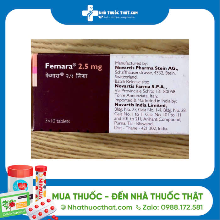 - Thuốc Femara 2,5mg (Ấn Độ) hiệu quả giúp điều trị ung thư vú ở nữ giới mãn kinh trong nhiều trường hợp.