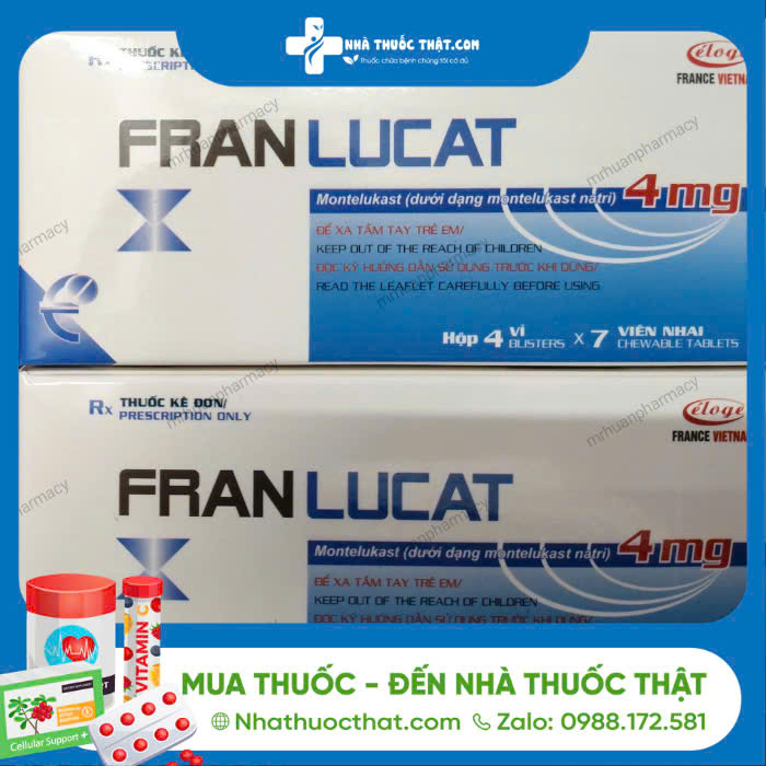 Franlucat 4 được kê đơn sử dụng cho các trường hợp viêm mũi dị ứng hoặc hen suyễn. Bệnh nhân cần dùng thuốc Franlucat thận trọng theo các chỉ dẫn của bác sĩ nhằm sớm đạt hiệu quả điều trị và ngăn ngừa nguy cơ gặp phải các phản ứng bất lợi.
