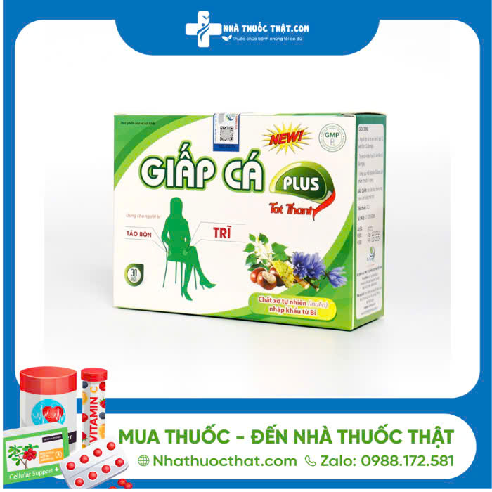 Giấp Cá Plus với thành phần chứa cao khô diếp cá, chất xơ tự nhiên nhập khẩu từ Bỉ, cao hạt dẻ ngựa giúp nhuận tràng, tăng tính bền của thành mạch đồng thời hỗ trợ giảm các triệu chứng của bệnh trĩ. Sản phẩm dành cho người hay bị táo bón do ăn uống hoặc thai kỳ, bị trĩ.