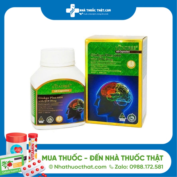Vitatree Ginkgo Plus 6000 With Q10 50mg là thực phẩm chức năng hỗ trợ bổ não đến từ thương hiệu Vitatree của Úc. Sản phẩm chứa thành phần chiết xuất từ lá bạch quả, hỗ trợ tăng tuần hoàn máu não, cải thiện trí nhớ, giảm đau đầu, chóng mặt, hỗ trợ giấc ngủ, hỗ trợ sức khỏe não bộ.