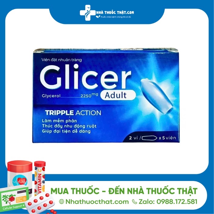 Glicer Adult chứa thành phần chính là Glycerol được chỉ định cho người lớn và trẻ em trên 12 tuổi gặp vấn đề về táo bón không thường xuyên. Viên đặt được sử dụng để điều trị ngắn hạn cho các trường hợp trên.
