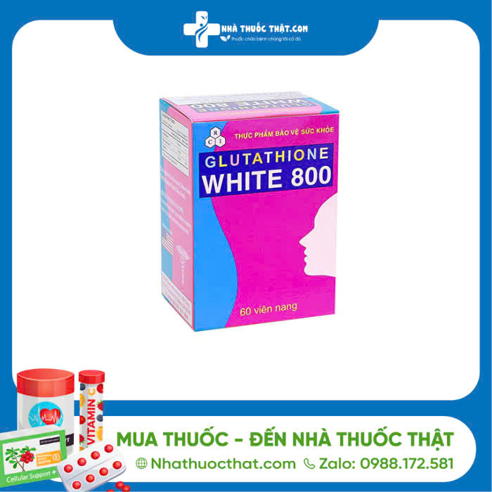 Glutathione White 800 là thực phẩm giúp hạn chế lão hóa da, sạm da khi tiếp xúc với ánh nắng mặt trời. Chất chống oxy hóa giúp bảo vệ da khỏi các gốc tự do có hại như hình thành đốm, tàn nhang, nếp nhăn,…