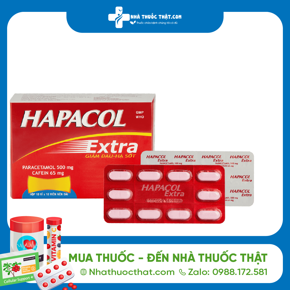 ➡️ Nhờ công thức tá dược tối ưu, Hapacol Extra có khả năng tan rã nhanh, hấp thu tốt, cho hiệu quả giảm đau – hạ sốt nhanh chóng chỉ sau 15–30 phút dùng thuốc.