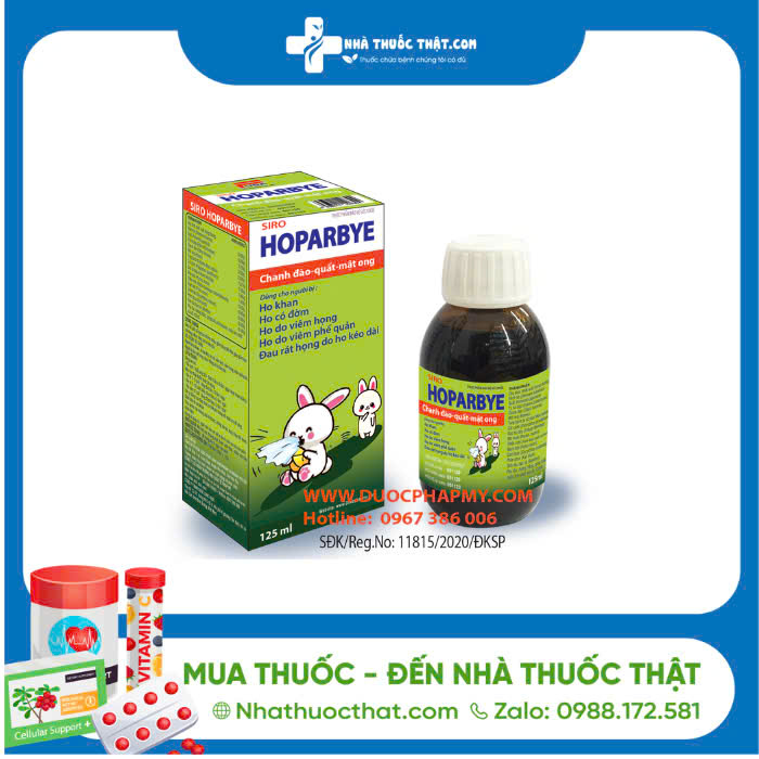 Siro Hoparbye do Công ty Cổ phần Thương mại Quốc tế Dược Pháp Mỹ (Việt Nam) phân phối. Hỗ trợ giảm ho khan, ho có đờm, ho do cảm lạnh, viêm họng hoặc viêm phế quản.