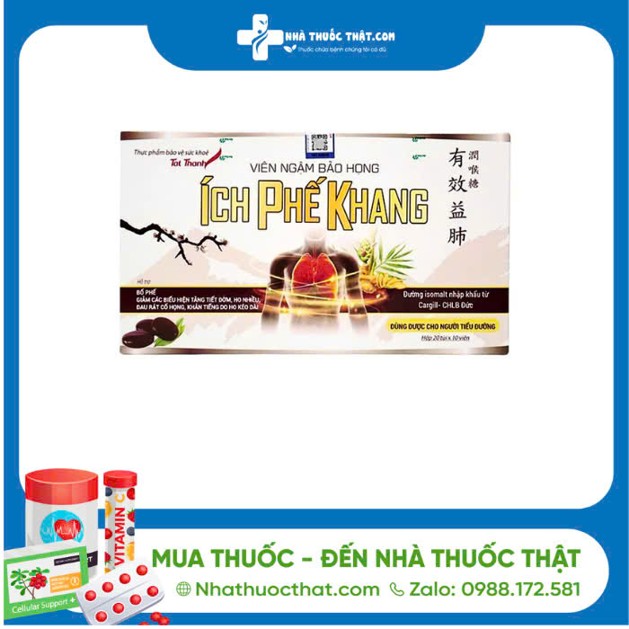 Viên ngậm bảo họng Ích phế khang hỗ trợ lợi phế, hỗ trợ giảm ho, giảm đờm, hỗ trợ giảm đau họng, khản tiếng do viêm họng, viêm phế quản.