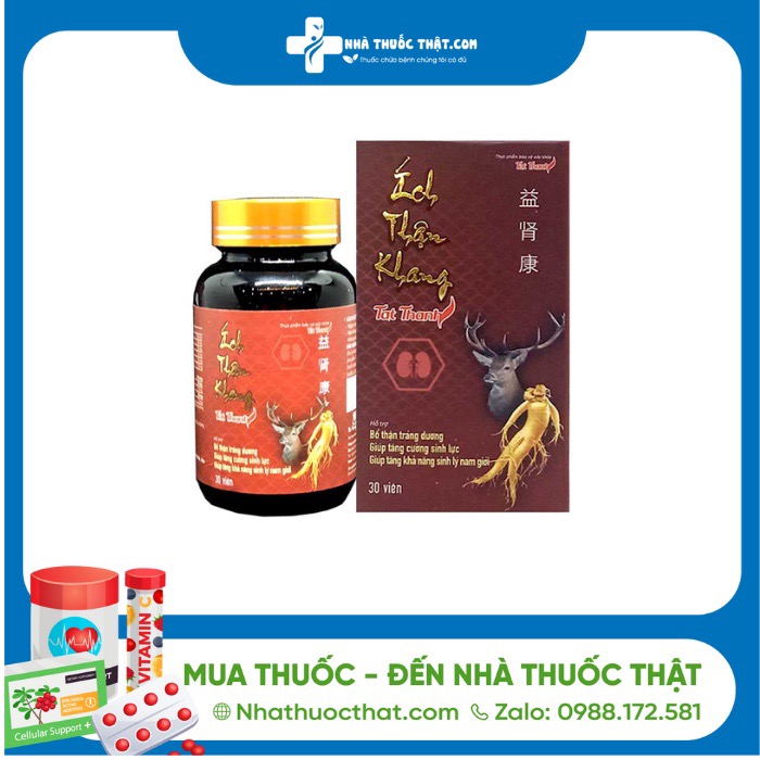 Thực phẩm bảo vệ sức khoẻ Ích Thận Khang Tất Thành giúp hỗ trợ cải thiện chức năng thận, bổ trợ sức khỏe sinh lý nam giới, tăng cường sinh lực và nâng cao khả năng sinh lý.Sản phẩm cũng giúp làm chậm quá trình mãn dục sớm, duy trì sức khỏe sinh lý ở nam giới.