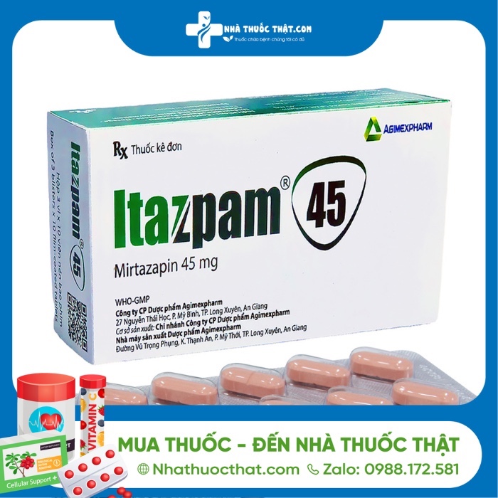 Itazpam 45 Agimexpharm là một loại thuốc chống trầm cảm, được chỉ định trong điều trị các đợt trầm cảm nặng. Hoạt động theo cơ chế khôi phục sự cân bằng của các chất hóa học tự nhiên (chất dẫn truyền thần kinh) trong não nên vai trò của thuốc giúp cải thiện tâm trạng và mang lại cảm giác hạnh phúc. Từ đó, hạn chế các suy nghĩ và hành vi tiêu cực, bảo vệ bệnh nhân trước những tình huống nguy hiểm có thể xảy ra.