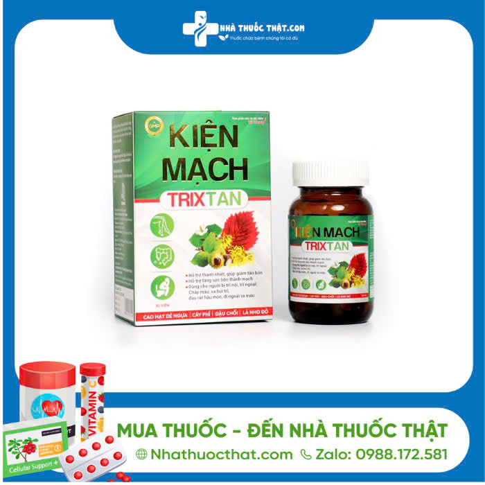 Kiện Mạch TRIXTAN có công dụng hỗ trợ thanh nhiệt và giảm táo bón, hỗ trợ tăng sức bền thành mạch, hỗ trợ cải thiện các biểu hiện và giảm nguy cơ bị trĩ.
