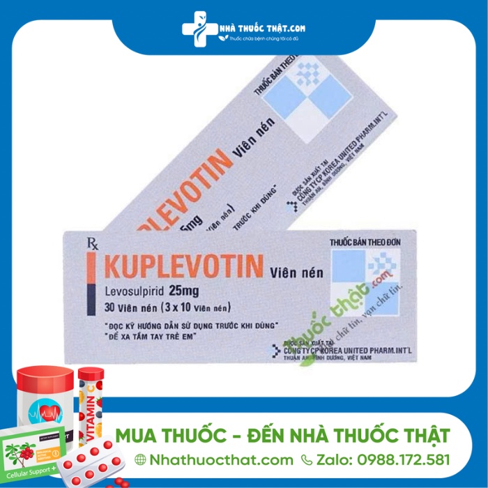 Kuplevotin là sản phẩm của Công ty Cổ PhầnKorea United Pharm Int’l (Hàn Quốc), chứa hoạt chất Levosulpirid mang lại tác dụng điều trị các bệnh lý do rối loạn chức năng đường tiêu hóa.
