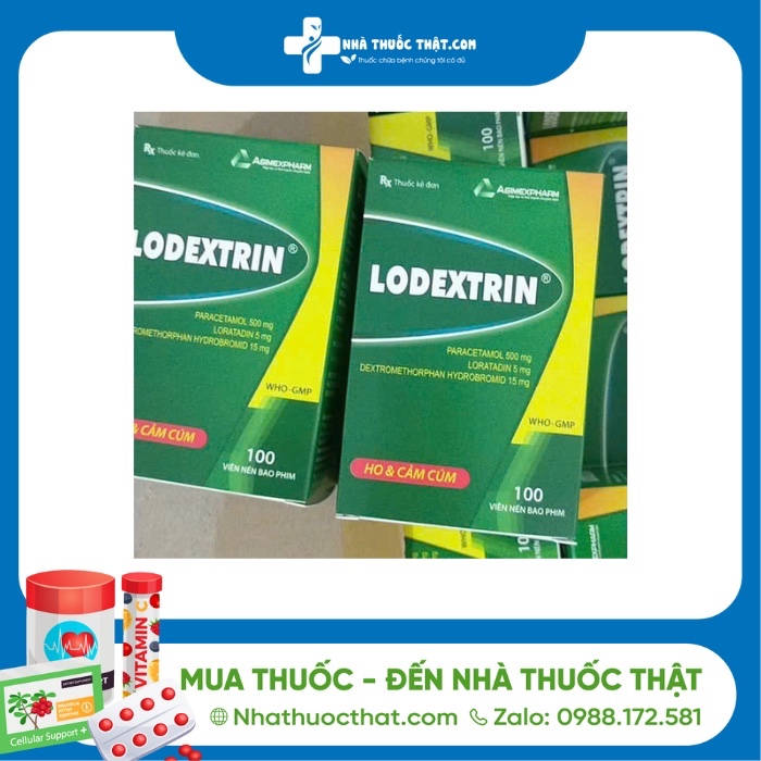 Lodextrin là sản phẩm của Công ty Cổ phần Dược phẩm Agimexpharm, thành phần chính là Paracetamol, Loratadin và Dextromethorphan hydrobrmid, là thuốc dùng để giảm đau hạ sốt trong các chứng cảm lạnh, đau nhức cơ thể, ho, sổ mũi, ớn lạnh. Điều trị các triệu chứng cảm cúm: Sốt, ho, nhức đầu, đau nhức bắp thịt, xương khớp, nghẹt mũi, chảy nước mũi, chảy nước mắt, ngứa mắt, viêm xoang, sổ mũi theo mùa, mẩn ngứa, viêm mũi dị ứng.