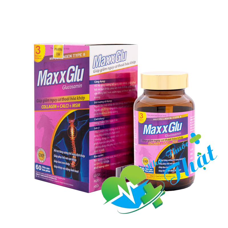 MaxxGlu với thành phần Glucosamin sulfate 2 NaCl,… giúp tăng cường bổ sung dịch khớp, hỗ trợ phục hồi mô sụn, khớp, hỗ trợ làm trơn ổ khớp vận động linh hoạt,… Dưới đây là thông tin chi tiết về sản phẩm.