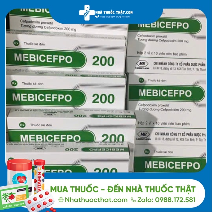 Mebicefpo 200 với thành phần chính là Cefpodoxim, được dùng để điều trị các tình trạng nhiễm khuẩn tại đường hô hấp dưới do các chủng nhạy cảm gây ra