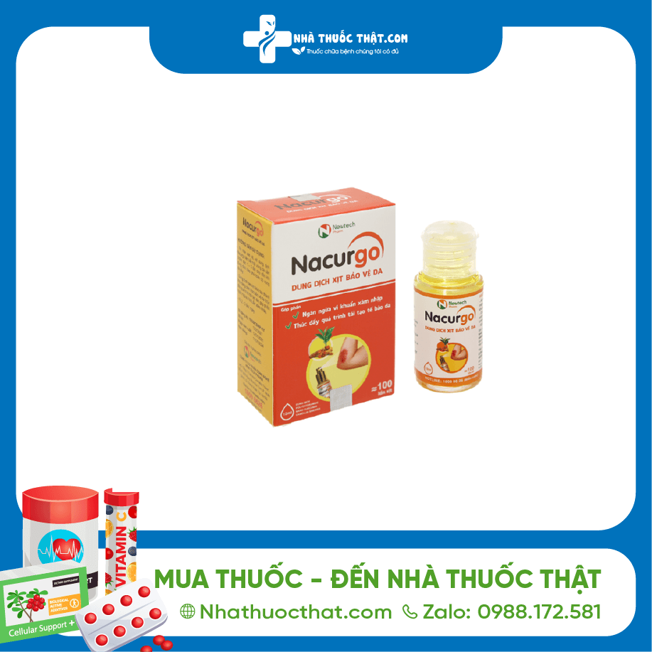 Nacurgo là dung dịch xịt trên da, tạo thành lớp màng sinh học Polyesteramide giúp: Làm mát và dịu da, Làm sạch da, góp phần thúc đẩy quá trình tái tạo tế bào da… Dưới đây là thông tin về sản phẩm
