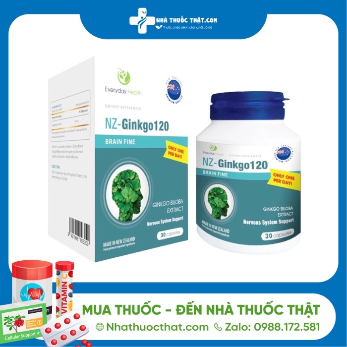 Ginkgo Biloba Leaf Extract (120mg): Tăng tuần hoàn máu não, cải thiện trí nhớ, hỗ trợ tập trung, giảm chóng mặt, ù tai do rối loạn tuần hoàn.