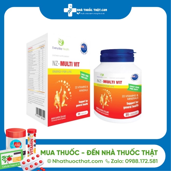 NZ Multi Vit bổ sung tới 22 loại vitamin và khoáng chất giúp nâng cao sức khỏe tổng quát, tăng cường hệ dịch, cải thiện chức năng thần kinh hiệu quả. Sản phẩm được nhập khẩu từ Newzealand và được Cục ATTP – Bộ Y Tế cấp phép lưu hành trên toàn quốc để người dùng dễ dàng tìm mua.