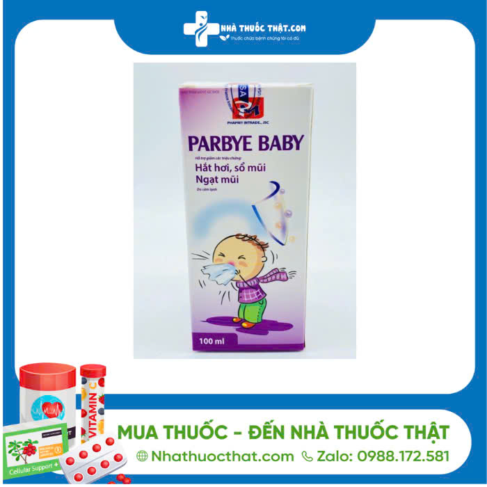 - Parbye Baby được sử dụng trong công dụng hỗ trợ giảm các triệu chứng hắt hơi, sổ mũi, ngạt mũi do cảm lạnh.
