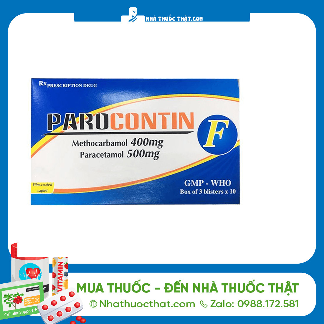 Công thức Paracetamol 500mg + Methocarbamol 400mg trong viên nén bao phim Parocontin F là sự phối hợp hợp lý và an toàn, mang lại: