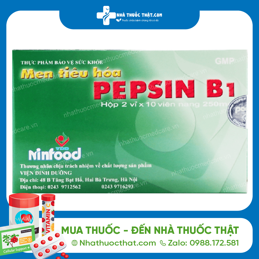 Men tiêu hóa Pepsin B1 Viện Dinh Dưỡng là sản phẩm kết hợp enzym Pepsin 250mg và Vitamin B1 1mg trong dạng viên nang tiện lợi, giúp: