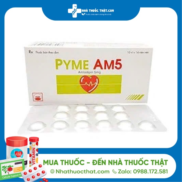 Pyme Am5 là sản phẩm của Pymepharco có chứa Amlodipin với công dụng điều trị tăng huyết áp, đau thắt ngực ổn định mạn tính, đau thắt ngực do co thắt mạch (đau thắt ngực Prinzmetal).