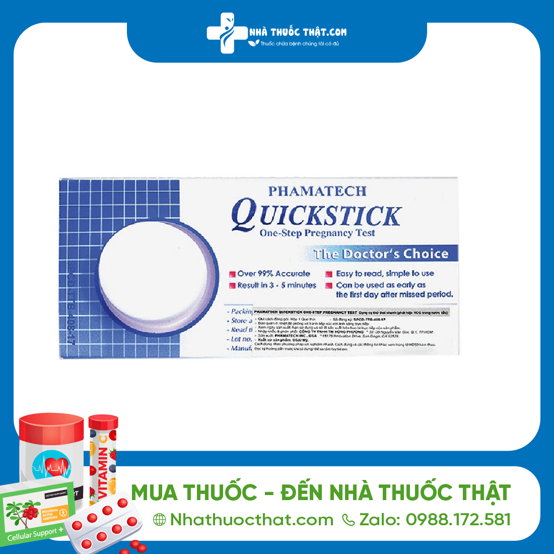 Quickstick là sản phẩm của công ty PHAMATECH, được sản xuất tại Hoa Kỳ, có thể phát hiện thai từ 7 đến 10 ngày sau khi giao hợp… Dưới đây là thông tin về sản phẩm