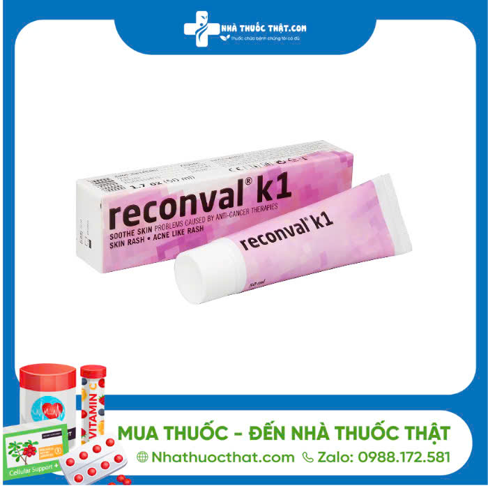 - Reconval K1 có tác dụng hỗ trợ điều trị 1 số vấn đề về da bao gồm ngứa, mẩn đỏ, khô da,… do tác dụng phụ của thuốc.