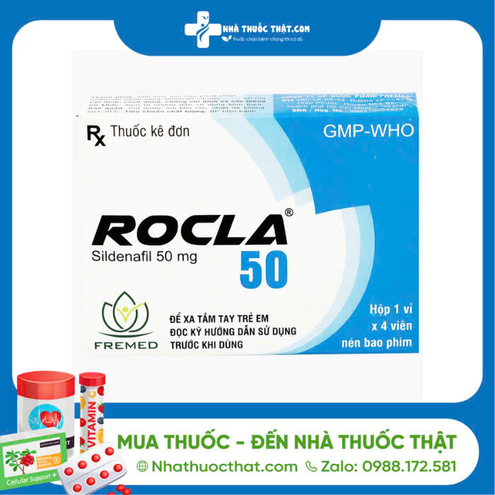 Rocla 50 là sản phẩm của Công ty Cổ phần Dược phẩm Fremed chứa thành phần Sildenafil (dưới dạng sildenafil citrate) dùng để điều trị các tình trạng rối loạn cương dương, là tình trạng không có khả năng đạt được hoặc duy trì cương cứng đủ để thỏa mãn hoạt động tình dục. Sildenafil chỉ có tác dụng khi có kích thích tình dục kèm theo.