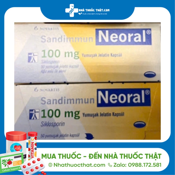 Sandimmun Neoral 100mg là sản phẩm của công ty Novartis Pharma Stein AG, có chứa thành phần chính là Cyclosporine 25 mg. Thuốc có tác dụng ức chế miễn dịch, được dùng cho bệnh nhân sau ghép tạng như ghép gan, ghép thận, bệnh nhân ung thư máu sau quá trình lọc máu nhiều lần.