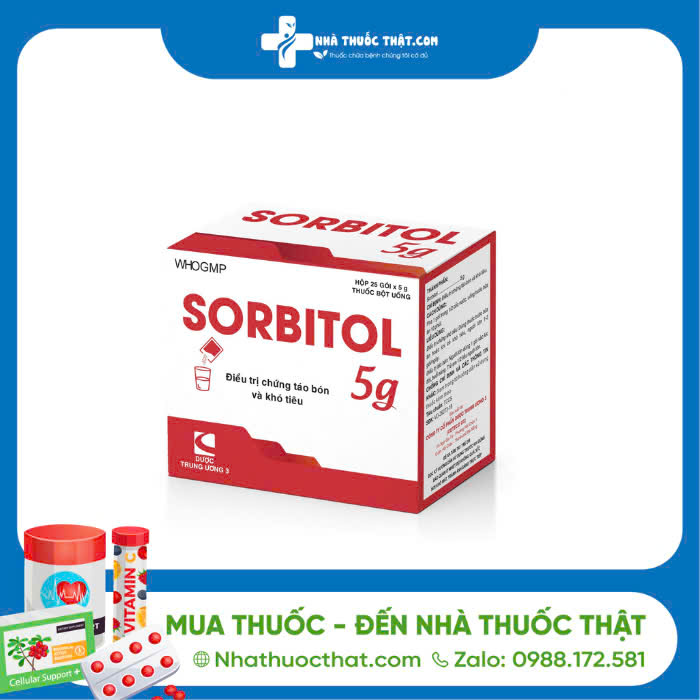 Sorbitol 5g của Công ty Dược phẩm Trung Ương 3, chứa dược chất chính là sorbitol dưới dạng thuốc bột uống, được dùng để điều trị triệu chứng táo bón, rối loạn tiêu hóa, khó tiêu.