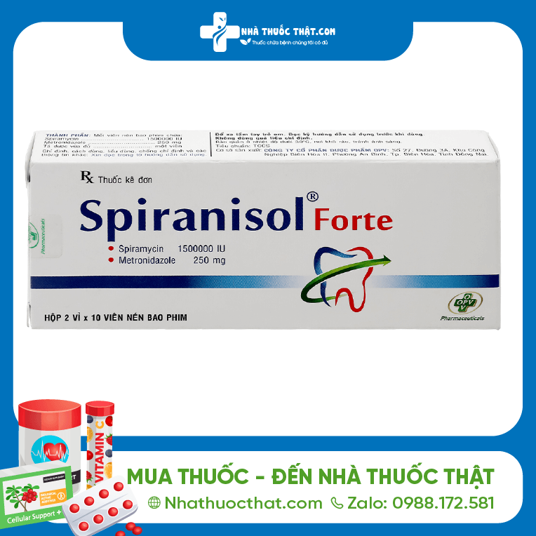 Spiranisol Forte là sản phẩm với công dụng chính điều trị các bệnh nhiễm khuẩn răng miệng cấp tính, mạn tính hoặc tái phát như: áp xe răng, viêm tấy, viêm mô tế bào quanh xương hàm, viêm quanh thân răng,.. Dưới đây là thông tin về sản phẩm