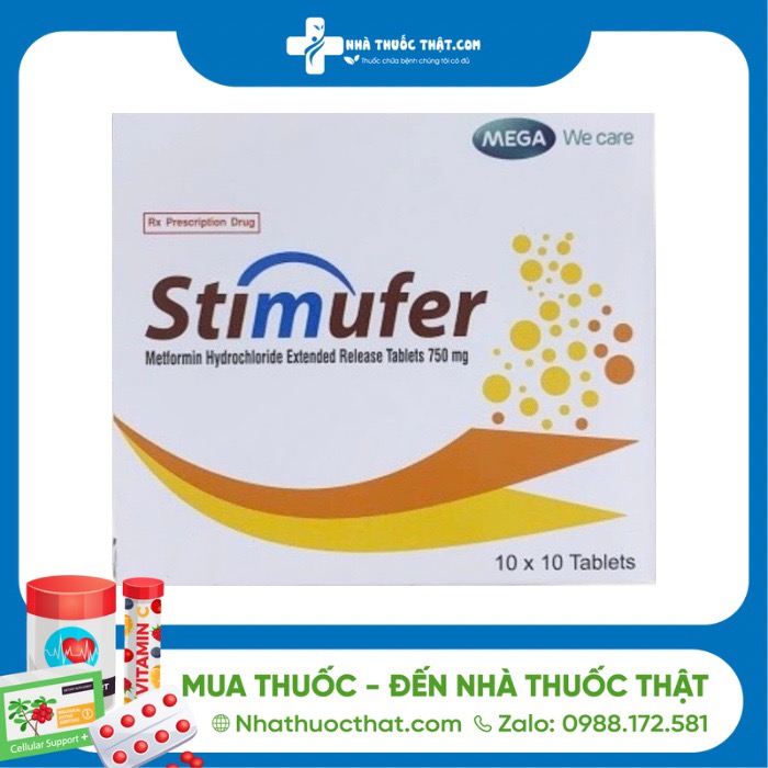 Stimufer là thuốc được bào chế ở dạng viên nén giải phóng kéo dài, dùng bằng đường uống. Thuốc có chứa hoạt chất chính là Metformin, một hoạt chất có tác dụng kích thích vận chuyển glucose từ máu vào trong tế bào, từ đó làm giảm nồng độ đường trong máu. Bên cạnh đó hoạt chất này cũng giúp làm giảm hấp thu glucose từ thức ăn. Từ đó làm giảm các triệu chứng của đái tháo đường và cải thiện tình trạng bệnh cho bệnh nhân.